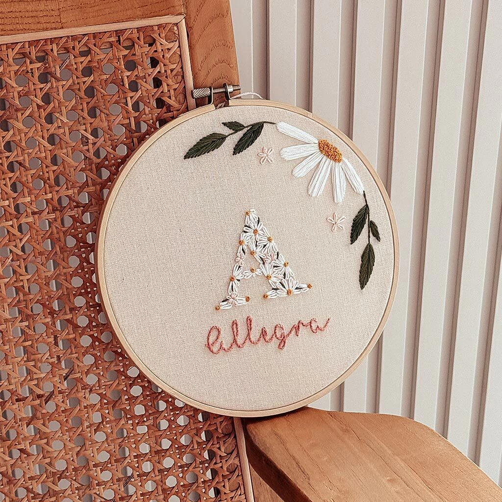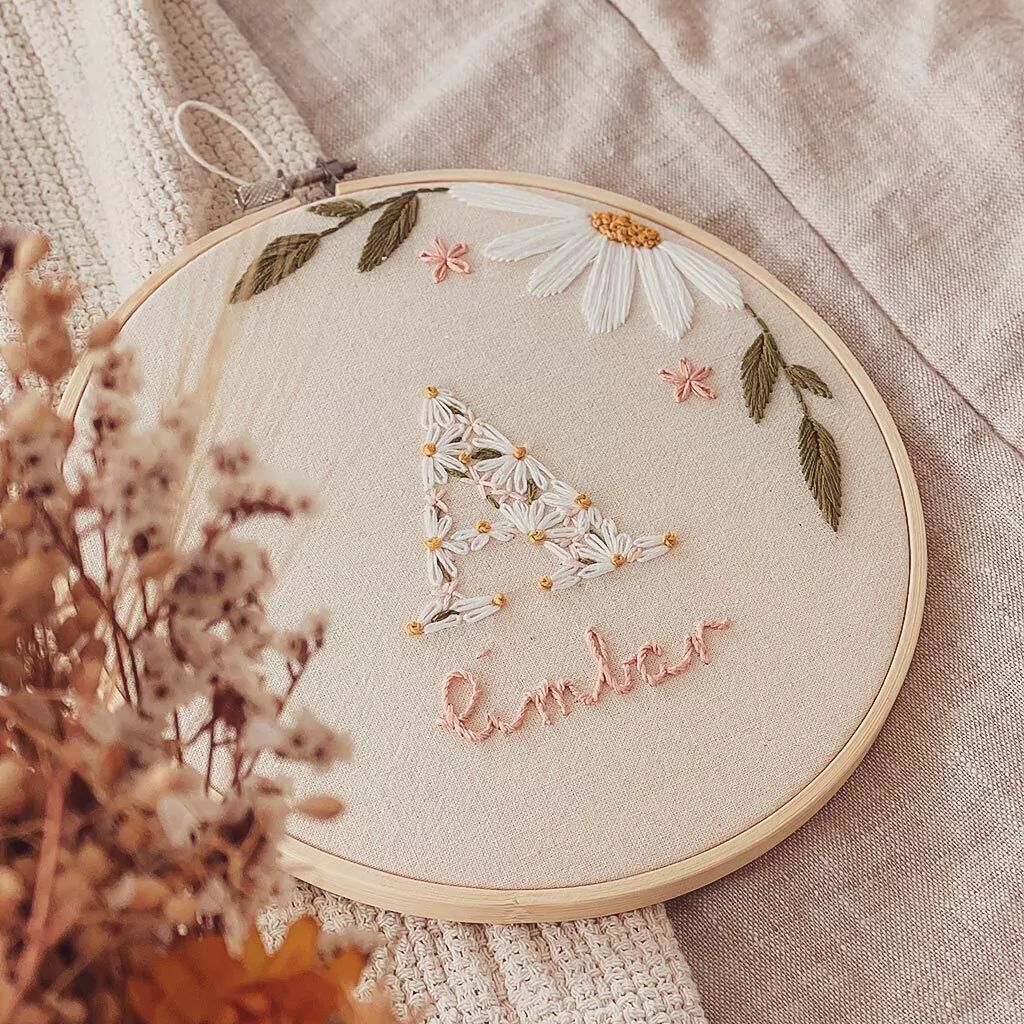 Un regalo, un encuentro, un presente para alguien que está por llegar. Si tenés ganas de dar algo único y especial, este bordado es ideal para vos. Es completamente personalizado, podés elegir los colores, el tamaño, si querés agregarle detalles o simplemente la letra completamente bordada.