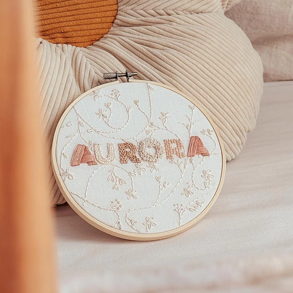 Se trata de un encuentro presencial de 4hs donde vamos a aprender 6 puntadas distintas para bordar este hermoso diseño personalizado. Mucho color y mucha textura garantizada!. Vas a poder elegir el nombre y toda la paleta de colores. Y lo mejor: cada diseño es único! No hay dos iguales ✨