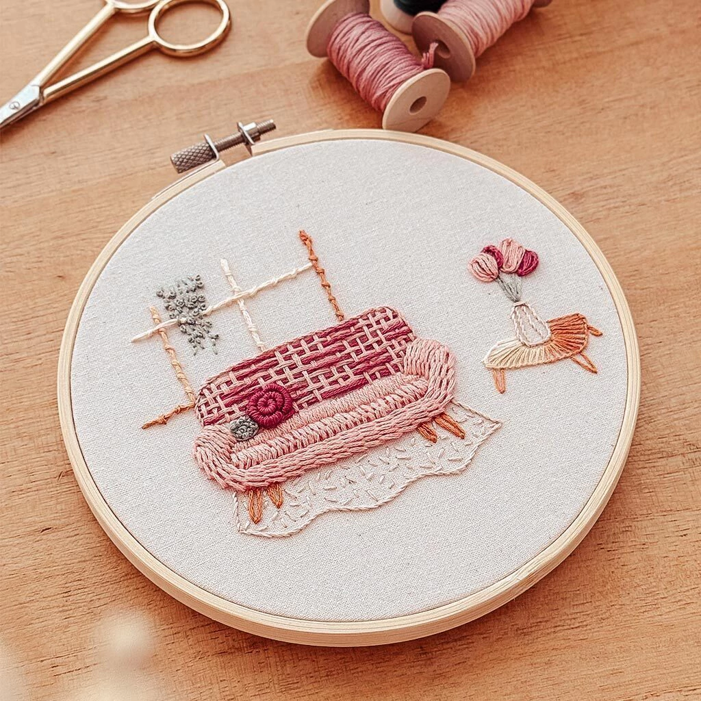 Un encuentro presencial de 4hs donde te voy a enseñar 8 puntadas de relieve, combinadas con puntadas clásicas, para bordar este hermoso diseño de interiorismo 🛋️.